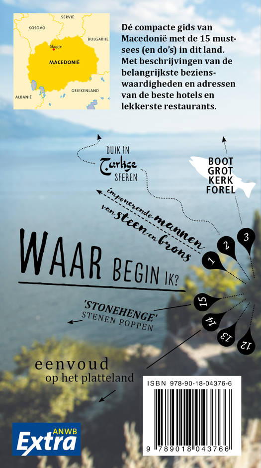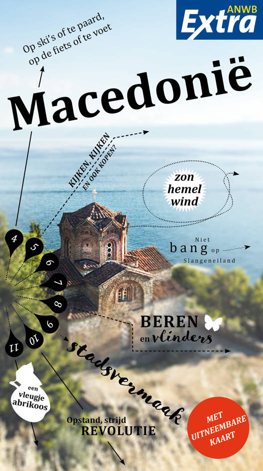 ANWB Extra reisgids Macedonië Beleef Macedonië met de compleet vernieuwde reisgids ANWB Extra Macedonië! Macedonië wordt door zijn vele prachtige bergen en groene weides ook wel het Zwitserland van de Balkan genoemd. Hierdoor is Macedonië de perfecte bestemming voor een leuke vakantie. De compacte ANWB Extra reisgids Macedonië biedt naast diverse routes door het land en veel praktische tips over hotels en vervoer ook 15 inspirerende bezienswaardigheden die je tijdens je vakantie niet mag missen. Bezoek de warmwaterbron en waterval ten oosten van Strumica, ga eindeloos wandelen in Nationaal Park Pelister, of dobber een middagje op het water rond de Matkakloof. Deze kleine reisgids past gemakkelijk in de tas en heeft een handige uitneembare kaart met daarop de beste tips voor winkelen, eten en drinken en uitgaan. ANWB Extra is de succesvolste reisgidsenserie van Nederland! Met meer dan 100 compacte gidsen biedt deze serie een reisgids voor nagenoeg iedere denkbare bestemming.
