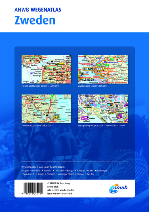 ANWB Wegenatlas Zweden Ga goed voorbereid op reis met de nieuwe ANWB Wegenatlas Zweden. De ANWB Wegenatlas Zweden is gedetailleerd en mooi van vormgeving. Met informatie over cultuur, actieve recreatie en een uitgebreid plaatsnamenregister. De atlas bevat kaarten op schaal 1:4.000.000 (Europese hoofdwegen), 1:800.000 (wegenkaarten Zweden noord) en 1:300.000 (wegenkaarten Zweden zuid). Inclusief stadsplattegronden van Stockholm, Halmstad, Helsingborg, Göteborg en Malmö op schaal 1:100.000 en 1:15.000.