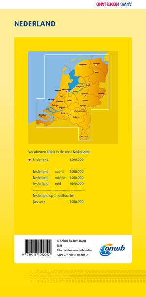 De ANWB Wegenkaart Nederland is al jaren de best verkochte routekaart van Nederland. Ook verkrijgbaar in deze reeks: Nederland noord, midden en zuid op schaal 1:200.000. Deze drie kaarten zijn tevens in een voordelige combinatieverpakking verkrijgbaar (ruim 20% korting).