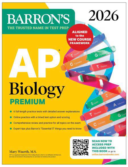 Barron’s AP Biology Premium, 2026 includes in‑depth content review and practice ALIGNED TO THE NEW COURSE FRAMEWORK. It’s the only book you’ll need to be prepared for exam day.