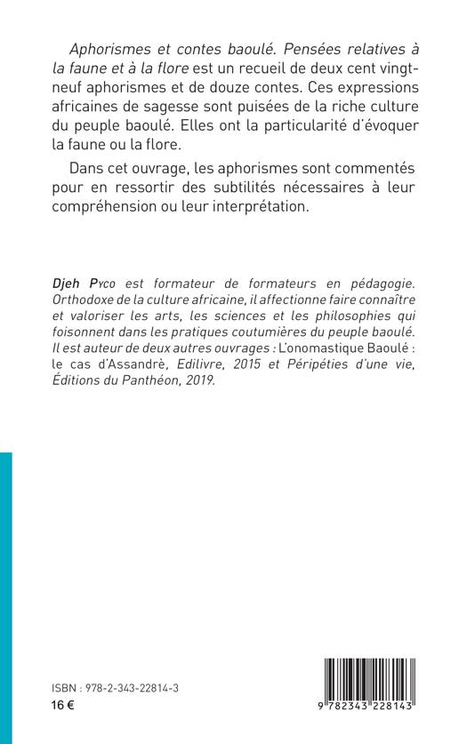 Ce recueil comprend deux cent vingt-neuf aphorismes et douze contes. Ces expressions africaines de sagesse sont puisées de la riche culture du peuple baoulé et ont la particularité d’évoquer la faune ou la flore. Les aphorismes sont commentés pour en ressortir des subtilités nécessaires à leur compréhension ou leur interprétation.