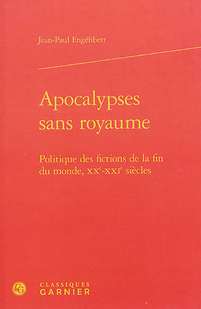 Cet ouvrage porte sur des fictions mettant en scène la fin du monde tels que les romans d'Antoine Volodine et de J.G. Ballard et les films Kaïro et V pour Vendetta. L'auteur réfléchit sur ces représentations post-apocalyptiques et le regard critique qu'elles jettent sur la condition humaine.