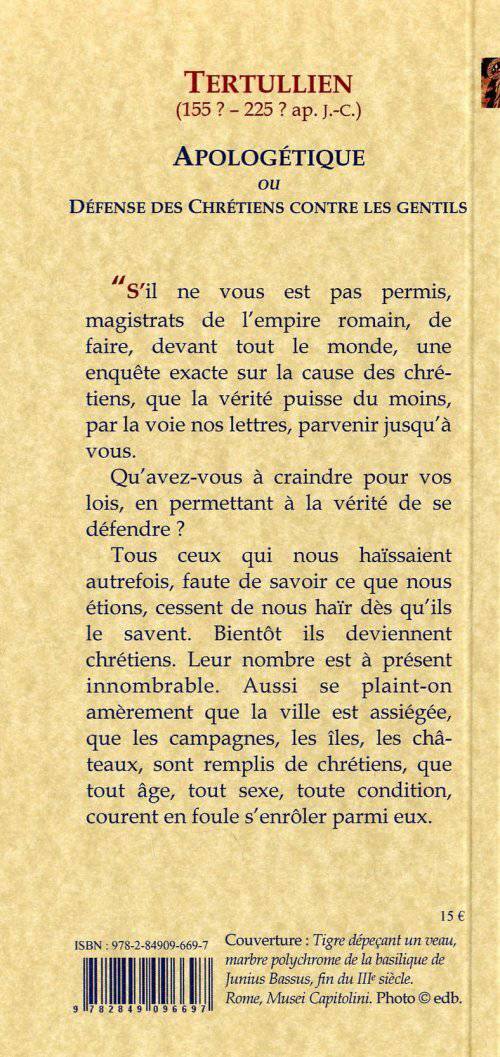 Apologétique ou Défense des Chrétiens contre les gentils