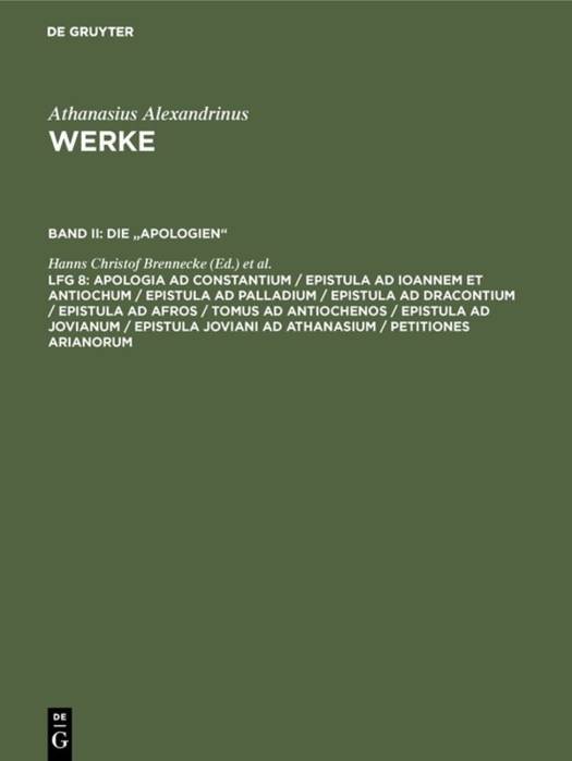 Die Athanasius Werke werden seit 1934 im Verlag Walter de Gruyter verlegt. Sie publizieren kritische Editionen der Werke des Athanasius von Alexandrien (gest. 373) in drei Bänden und einzelnen Lieferungen.