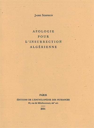Réflexion politique sur l'insurrection qui a commencé au printemps 2001 en Algérie, en particulier en Kabylie. L'auteur rend hommage à l'héroïsme des insurgés algériens.