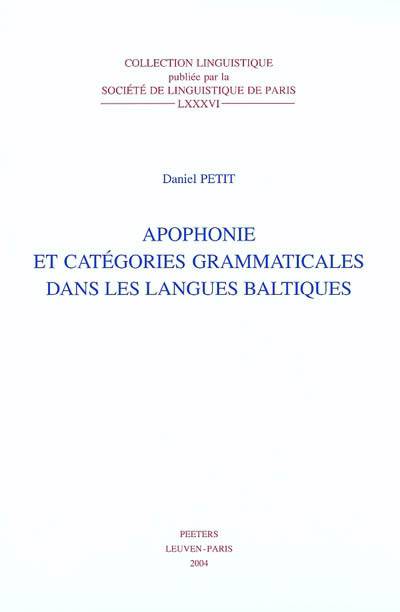 Dans la grammaire comparee des langues indo-europeennes, les langues baltiques (lituanien, letton, vieux prussien) occupent une position remarquable par l'archaisme et la richesse de leurs donnees linguistiques. L'un des traits les plus notables de ces langues est l'existence d'apophonies, c'est-a-dire de variations vocaliques a fonction morphologique. L'objet du present ouvrage est d'etudier le probleme de l'apophonie en baltique a travers une approche jusqu'a present peu exploree, celle du rapport de l'apohonie radicale et des categories grammaticales (personne, cas, nombre, genre, mode et temps).