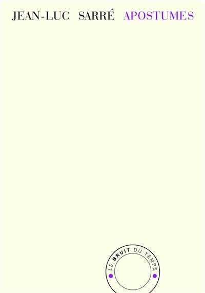 « Apostume », que Jean-Luc Sarré a choisi pour titre des nouvelles pages de ses carnets, appartient à l'ancien vocabulaire médical et désigne « un abcès, une tumeur purulente » (il est encore employé par Giono). Pour le misanthrope contraint d'appartenir au « pitoyable cénacle » de l'hôpital - le jeu sur les mots, l'humour (noir ?) - est un moyen de tenir à distance et d'apprivoiser la réalité. Et si la maladie, la fatigue rendent parfois plus difficile « de glaner quelques bribes de réalité » (« Je n'avais pas vraiment mes yeux », confie-t-il quelque part), cette perte est comme compensée par un surcroît d'alacrité face au spectacle de la comédie humaine. Pas seulement celui de l'hôpital, d'ailleurs, les pages consacrées à un séjour à la plage sont parmi les plus féroces : « Finalement, c'est comme si mon acrimonie m'avait rendu un peu de ce regard dont je m'estimais privé. »