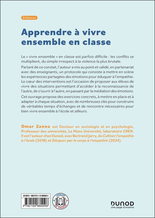 Le « vivre ensemble » en classe est parfois difficile : les conflits se multiplient, du simple irrespect à la violence la plus brutale. Partant de ce constat, l’auteur a mis au point et validé, en partenariat avec des enseignants, un protocole qui consiste à mettre en scène les expériences partagées des émotions pour éduquer à l’empathie. Le cœur des interventions est l’occasion de proposer aux élèves de vivre des situations permettant d’accéder à la reconnaissance de l’autre, de s’ouvrir à l’autre, en passant par la médiation des émotions. Cet ouvrage propose des exercices concrets, à mettre en place et à adapter à chaque situation, avec de nombreuses clés pour construire de véritables temps d’échanges et de rencontre nécessaires pour bien vivre ensemble à l’école et ailleurs.