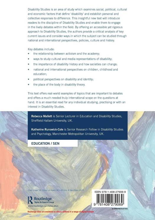 Disability Studies is an area of study which examines social, political, cultural, and economic factors that define 'disability' and establish personal and collective responses to difference. This insightful new text will introduce readers to the discipline of Disability Studies and enable them to engage in the lively debates within the field. By offering an accessible yet rigorous approach to Disability Studies, the authors provide a critical analysis of key current issues and consider ways in which the subject can be studied through national and international perspectives, policies, culture and history.