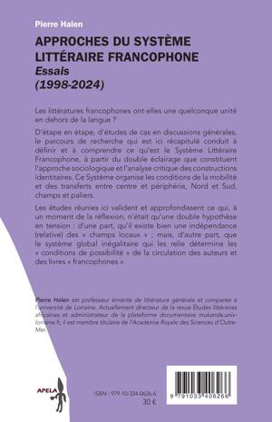 Les littératures francophones ont-elles une quelconque unité en dehors de la langue ? D'étape en étape, d'études de cas en discussions générales, le parcours de recherche qui est ici récapitulé conduit à définir et à comprendre ce qu'est le Système Littéraire Francophone, à partir du double éclairage que constituent l'approche sociologique et l'analyse critique des constructions identitaires. Ce Système organise les conditions de la mobilité et des transferts entre centre et périphérie, Nord et Sud, champs et paliers. Les études réunies ici valident et approfondissent ce qui, à un moment de la réflexion, n'était qu'une double hypothèse en tension: d'une part, qu'il existe bien une indépendance (relative) des champs locaux; mais, d'autre part, que le système global inégalitaire qui les relie détermine les conditions de possibilité de la circulation des auteurs et des livres francophones .