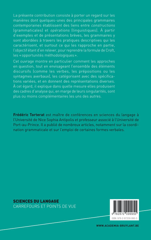 Cet ouvrage présente, à travers quelques exemples concrets, dans quelle mesure certaines approches grammaticales contemporaines établissent des liens entre les constructions (en particulier phrastiques) et les opérations (linguistiques). Destinée aux étudiants de deuxième cycle universitaire, aux chercheurs, mais aussi à tous ceux qui s'intéressent aux sciences du langage, cette contribution en donne une version méthodologique, ainsi que quelques pistes à caractère épistémologique.