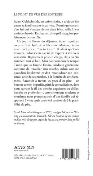 Un jour, à l'heure du déjeuner, Adam reçoit un coup de fil du lycée de sa fille aînée, Miriam, l'informant qu'il y a eu "un incident". Pendant quelques minutes, l'adolescente a cessé de respirer et son coeur s'est arrêté. Rapidement prise en charge, elle a pu être ranimée : tout va bien. Mais pour combien de temps ? Tandis que sa femme Emma, médecin généraliste, continue de travailler sans relâche, Adam voit son quotidien bouleversé et doit reconsidérer son existence, celle de ses proches, à la lumière de cet événement. Racontée à travers les yeux d'un père - un homme acerbe, imparfait, pétri de contradictions, dont nous suivons le fil des pensées angoissées ou drôles, banales ou profondes -, cette chronique moderne et mordante nous plonge au sein d'une famille qui réapprend à vivre après avoir été confrontée à la possibilité du pire.