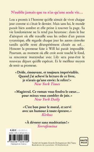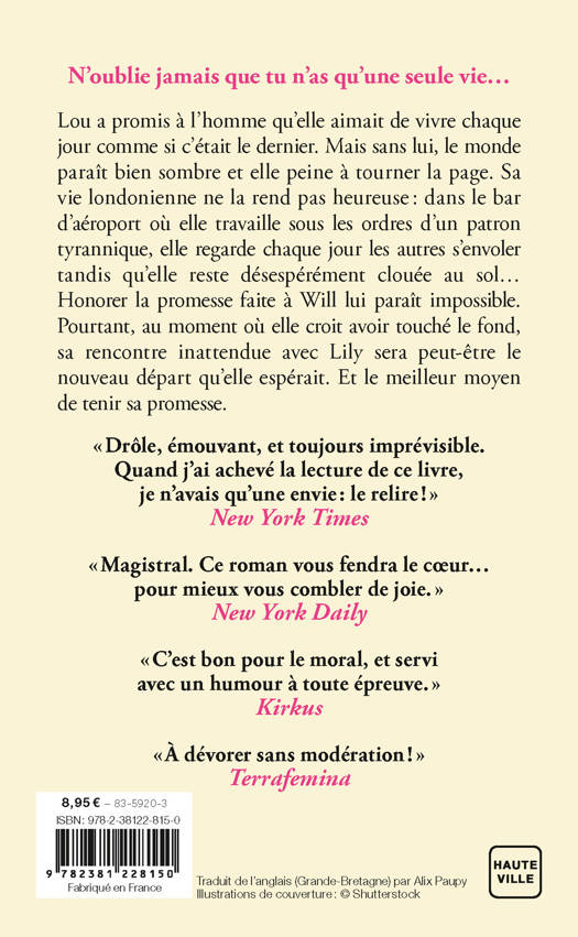Lou a promis à l'homme qu'elle aimait de vivre chaque jour comme si c'était le dernier. Mais sans lui, le monde paraît bien sombre et elle peine à tourner la page. Sa vie londonienne ne la rend pas heureuse : dans le bar d'aéroport où elle travaille sous les ordres d'un patron tyrannique, elle regarde chaque jour les autres s'envoler tandis qu'elle reste désespérément clouée au sol...
