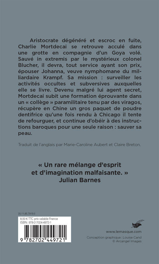 Charlie Mortdecai, marchand de tableaux londonien, snob et persifleur, est harcelé par la police spéciale de Sa Majesté. Il est vrai qu'il a volé un Goya au Prado. Pour le faire passer discrètement en Amérique, quoi de mieux que le double plafond de sa Rolls ? Au Nouveau-Mexique, où le traquent flics caricaturaux et sbires de diverses agences gouvernementales, l'escapade de Charlie dégénère en un hilarant road-movie parsemé de cadavres. Puis, réfugié en Irlande, il s'offre une cavale digne des Trente-neuf Marches. Mais au fait, qu’est devenu le tableau ?
