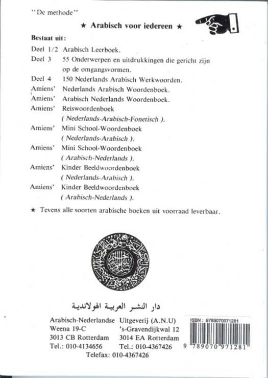 Deel (3), Uw praktische boek voor 55 Belangrijke uitdrukkingen en omgangsvormen in het dagelijks leven als : bedankvormen, eenvoudig commentaar, beledigingen, felicitaties, uitroepen, toestemming vragen, uitdrukkingen van medeleven / ergernis, goedkeuren, afkeuren, bij de (groenten- en fruithandelaar /kapper/juwelier/bank/dokter/apotheek/tandarts), in het (hoetel/restaurant/postkantoor...enz.), hoe schrijf je een brief, de (woonkamer /slaapkamer/eetkamer/keuken/badkamer..enz.),u zult niet alleen uw kennis van de Arabische taal vergroten, maar wat belangrijker is, u zult zich veel meer op uw gemak gaan voelen in de voor u nog zo vreemde omgeving. Alle onderwerpen worden bovendien in dialoogvorm behandeld (Nederlands-Arabisch met de uitspraak en foto`s). Als u wat lef heeft, kunt u de draad van het gesprek in eigen hand houden, u heeft geen CD`s nodig voor de uitspraak.