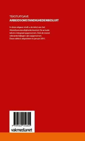 In deze uitgave vindt u de tekst van het Arbeidsomstandighedenbesluit. De actuele tekst is integraal opgenomen. Ook de meest relevante bijlagen zijn opgenomen. Deze editie is afgesloten in januari 2017.