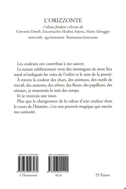 Les couleurs ne sont pas comptables. Il y en a des milliers, autant que nos rêveries. On a trop banalisé les couleurs. Il faut revenir aux couleurs. Il ne faut pas bizarrement colorer la réalité, mais lui donner la force de sa vérité, et de son authenticité. Les sensations colorées sont le pain quotidien de l’artiste et du poète, de l’architecte et du musicien. Les formes et les couleurs que nous voyons offrent les lignes de la beauté, de la clarté, de la pureté chromatique. La beauté est partout. À nous de la respecter et de la transmettre à l’avenir. Beauté des choses. Beauté de la nature. Beauté des espaces. Beauté du ciel. Beauté de l’amour. Beauté qui nous a été donnée par Dieu, dans l’harmonie générale qui nous enchante. Les couleurs ont contribué à me sauver. La nature sublimement verte des montagnes de mon lieu natal m’indiquait les voies de l’infini et le sens de la pureté. À travers la couleur des chars, des animaux, des outils de travail, des maisons, des arbres, des fleurs, des papillons, des oiseaux, je remontais la nuit des temps. Et je trouvais une issue. Plus que le changement de la valeur d’une couleur dans le cours de l’histoire, c’est son pouvoir magique qui suscite ma curiosité.