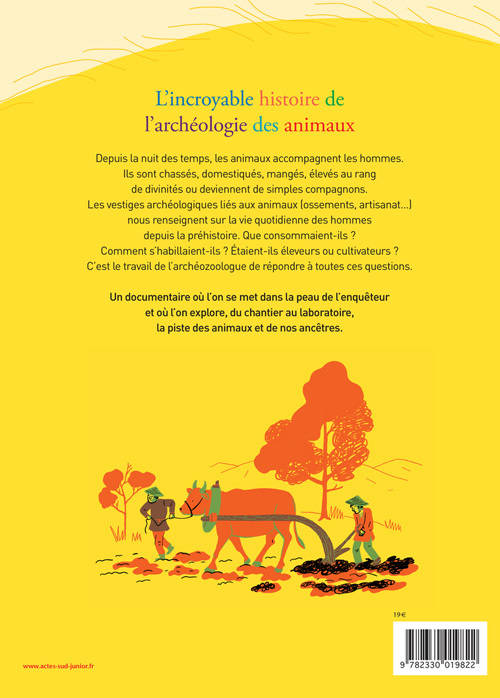 Lors de fouilles archéologiques, l'archéozoologue se réserve les trouvailles animales : ossements, dents, mais aussi excréments fossilisés... Rien n'échappe à ces scientifiques pour déterminer à quoi ressemblaient ces animaux d'une autre époque et quels rôles ils jouaient auprès des hommes. Car retracer la vie et l'histoire des animaux grâce à l'archéologie, c'est aussi apprendre une foule de choses sur l'évolution de la société. Cet ouvrage présente sous la forme de questions/réponses les nombreuses découvertes scientifiques réalisées à partir des fouilles. On apprendra par exemple que le mouton et la chèvre, si nombreux et courants dans nos campagnes actuelles, sont en fait des espèces exotiques qui ont été importées et domestiquées. Ou encore que les peintures des grottes comme Lascaux, loin d'être de simples ornements décoratifs, ont une véritable signification symbolique.