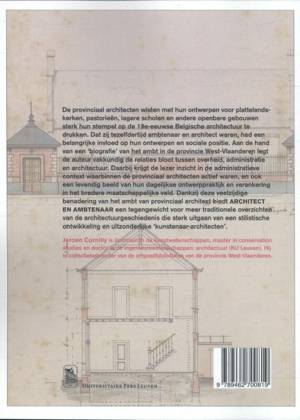 Het ambt van provinciaal architect in de 19e-eeuwse Belgische architectuur. De provinciaal architecten wisten met hun ontwerpen voor plattelandskerken, pastorieën, lagere scholen en andere openbare gebouwen sterk hun stempel op de 19e-eeuwse Belgische architectuur te drukken. Dat zij tezelfdertijd ambtenaar en architect waren, had een belangrijke invloed op hun ontwerpen en sociale positie. Aan de hand van een ‘biografie’ van het ambt in de provincie West-Vlaanderen legt de auteur vakkundig de relaties bloot tussen overheid, administratie en architectuur. Daarbij krijgt de lezer inzicht in de administratieve context waarbinnen de provinciaal architecten actief waren, en ook een levendig beeld van hun dagelijkse ontwerppraktijk en verankering in het bredere maatschappelijke veld. Dankzij deze veelzijdige benadering van het ambt van provinciaal architect biedt Architect en ambtenaar een tegengewicht voor meer traditionele overzichten van de architectuurgeschiedenis die sterk uitgaan van een stilistische ontwikkeling en uitzonderlijke ‘kunstenaar-architecten’.