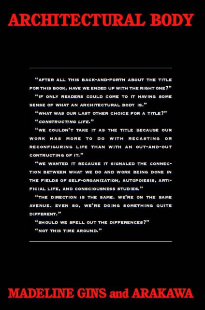 A verbal articulation of the authors' visionary theory of how the human body, architecture, and creativity define and sustain one another This revolutionary work by artist-architects Arakawa and Madeline Gins demonstrates the inter-connectedness of innovative architectural design, the poetic process, and philosophical inquiry. Together, they have created an experimental and widely admired body of work--museum installations, landscape and park commissions, home and office designs, avant-garde films, poetry collections--that challenges traditional notions about the built environment. This book promotes a deliberate use of architecture and design in dealing with the blight of the human condition; it recommends that people seek architectural and aesthetic solutions to the dilemma of mortality.