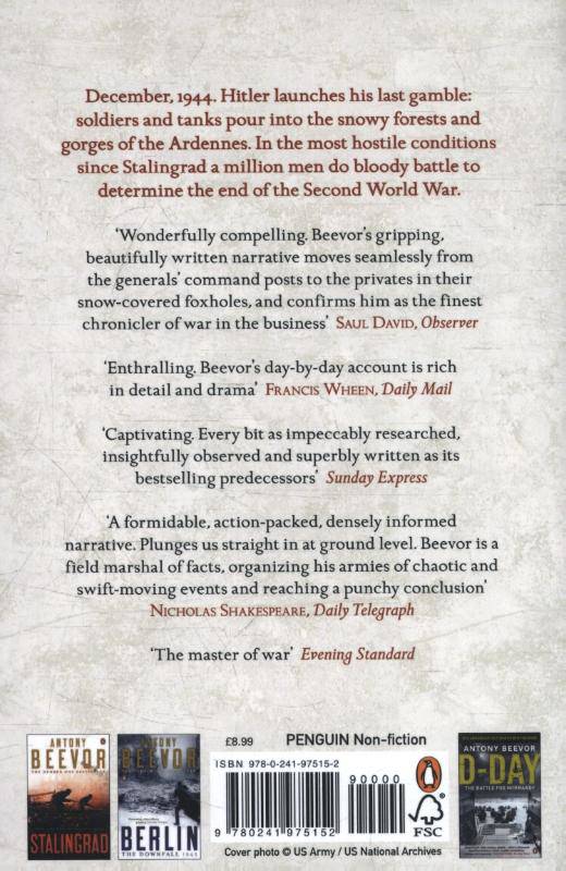 From the bestselling author of Stalingrad, Berlin and D-Day, Antony Beevor's Ardennes 1944: Hitler's Last Gamble tells the story of the German's ill-fated final stand. On 16 December, 1944, Hitler launched his 'last gamble' in the snow-covered forests and gorges of the Ardennes. He believed he could split the Allies by driving all the way to Antwerp, then force the Canadians and the British out of the war. Although his generals were doubtful of success, younger officers and NCOs were desperate to believe that their homes and families could be saved from the vengeful Red Army approaching from the east. Many were exultant at the prospect of striking back.