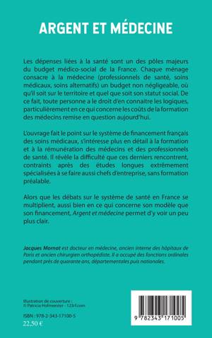 Les dépenses liées à la santé sont un des pôles majeurs du budget médico-social de la France. Chaque ménage consacre à la médecine un budget non négligeable. L'ouvrage fait le point sur le système de financement français des soins médicaux, s'intéresse plus en détail à la formation et à la rémunération des médecins et des professionnels de santé. Il révèle la difficulté que ces derniers rencontrent. Alors que les débats sur le système de santé en France se multiplient, Argent et médecine permet d'y voir un peu plus clair.