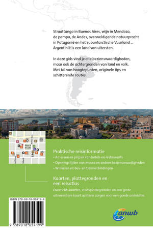 De ANWB Wereldreisgids Argentinië is een complete en praktische reisgids voor jouw droomvakantie door Argentinië. Het land van de donderende watervallen van Iguazú, de huizenhoge gletsjers van Perito Moreno en zonnende zeeolifanten op het kiezelstrand van Península Valdés. Maar ook van de mix van Europese architectuurstijlen uit de 19e en vroeg 20e eeuw in Buenos Aires en de wijnhuizen van Mendoza en Cafayate.