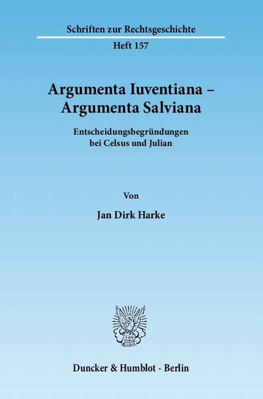 Während der erste Teil eine kurze Neufassung einer älteren Untersuchung zur Methode des Celsus ist, geht es im zweiten Teil um die Entscheidungsbegründungen Julians, des anderen großen Hochklassikers, dessen Eigenart gerade durch die Gegenüberstellung mit Celsus erhellt und wiederum den Charakter auch dieses Juristen beleuchtet. Das zur Einteilung der Argumentation jeweils verwendete Schema beruht auf der Unterscheidung zwischen systemimmanenter Rechtsfindung durch Fallanknüpfung oder Deduktion und systemüberschreitender Rechtsfindung durch Wertung, ferner auf der Differenzierung zwischen unvermittelter Fallentscheidung durch den direkten Schluss aus einem Vergleichsfall oder einer Norm und der vermittelten Falllösung durch die Fortbildung einer Norm, die vom Gesetzgeber, der Rechtswissenschaft oder dem Urheber eines Rechtsgeschäfts gesetzt ist.
