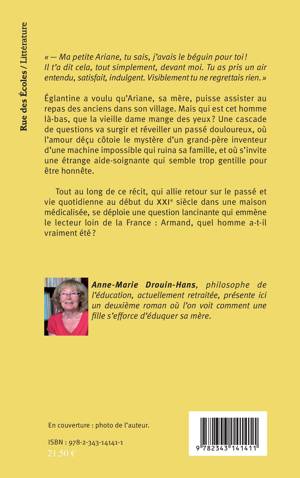 Églantine a voulu qu'Ariane, sa mère, puisse assister au repas des anciens de son village. Mais qui est cet homme là-bas, que la vieille dame mange des yeux ? Un cascade de questions va surgir et réveiller un passé douloureux. Tout au long de ce récit, qui allie retour sur le passé et vie quotidienne au début du XXIème siècle dans une maison médicalisée, se déploie une question lancinante : Armand, quel homme a-t-il vraiment été ?