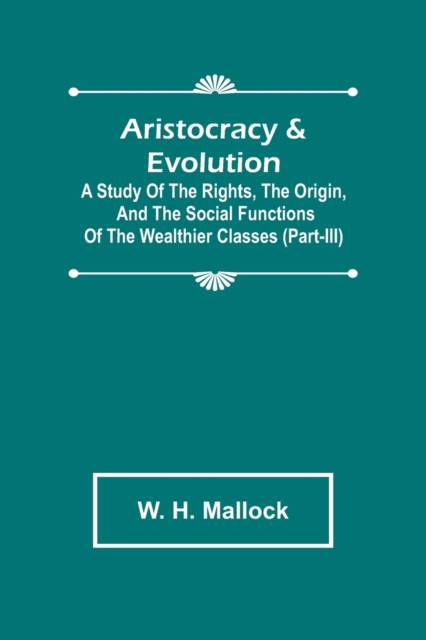 Aristocracy & Evolution; A Study of the Rights, the Origin, and the Social Functions of the Wealthier Classes (Part-III)
