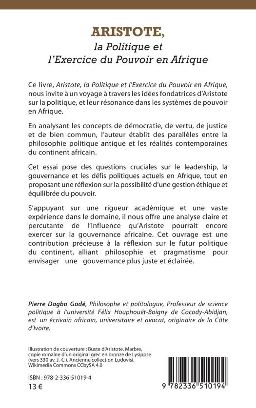 Ce livre, Aristote, la Politique et l'Exercice du Pouvoir en Afrique, nous invite à un voyage à travers les idées fondatrices d'Aristote sur la politique, et leur résonance dans les systèmes de pouvoir en Afrique. En analysant les concepts de démocratie, de vertu, de justice et de bien commun, l'auteur établit des parallèles entre la philosophie politique antique et les réalités contemporaines du continent africain. Cet essai pose des questions cruciales sur le leadership, la gouvernance et les défis politiques actuels en Afrique, tout en proposant une réflexion sur la possibilité d'une gestion éthique et équilibrée du pouvoir. S'appuyant sur une rigueur académique et une vaste expérience dans le domaine, il nous offre une analyse claire et percutante de l'influence qu'Aristote pourrait encore exercer sur la gouvernance africaine. Cet ouvrage est une contribution précieuse à la réflexion sur le futur politique du continent, alliant philosophie et pragmatisme pour envisager une gouvernance plus juste et éclairée.