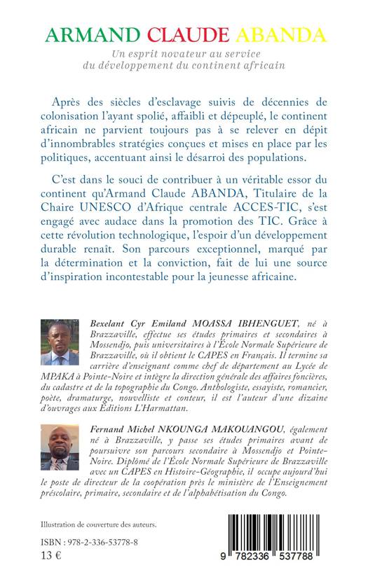 Après des siècles d'esclavage suivis de décennies de colonisation l'ayant spolié, affaibli et dépeuplé, le continent africain ne parvient toujours pas à se relever en dépit d'innombrables stratégies conçues et mises en place par les politiques, accentuant ainsi le désarroi des populations. C'est dans le souci de contribuer à un véritable essor du continent qu'Armand Claude ABANDA, Titulaire de la Chaire UNESCO d'Afrique centrale ACCES-TIC, s'est engagé avec audace dans la promotion des TIC. Grâce à cette révolution technologique, l'espoir d'un développement durable renaît. Son parcours exceptionnel, marqué par la détermination et la conviction, fait de lui une source d'inspiration incontestable pour la jeunesse africaine.