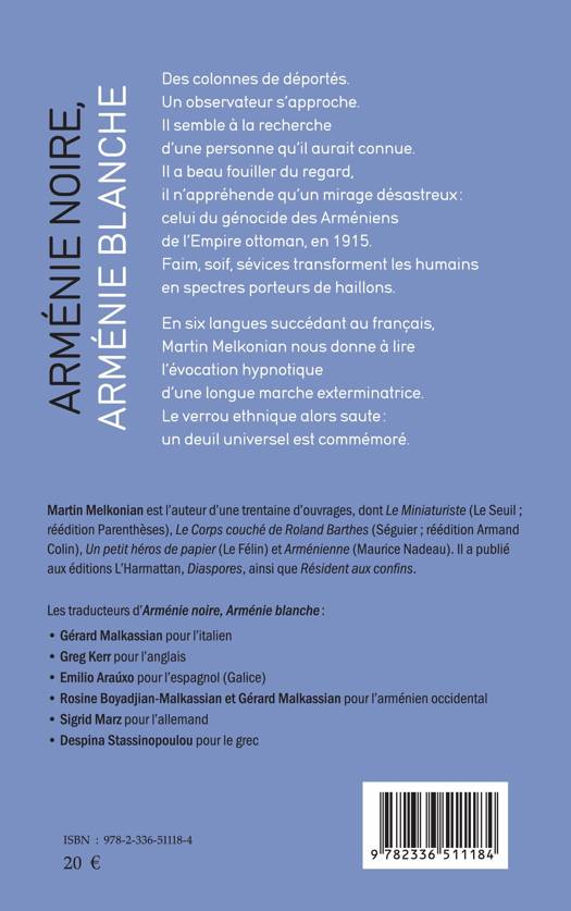 Des colonnes de déportés. Un observateur s'approche. Il semble à la recherche d'une personne qu'il aurait connue. Il a beau fouiller du regard, il n'appréhende qu'un mirage désastreux celui du génocide des Arméniens de l'Empire ottoman, en 1915. Faim, soif, sévices transforment les humains en spectres porteurs de haillons. En six langues succédant au français, Martin Melkonian nous donne à lire l'évocation hypnotique d'une longue marche exterminatrice. Le verrou ethnique alors saute un deuil universel est commémoré.