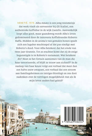 Venetië, 1978. Alba Amato is een jong weesmeisje dat werk vindt als serveerster bij Gli Scalini, een authentieke koffiebar in de wijk Castello. Aanvankelijk loopt alles goed, maar gaandeweg wordt Alba’s leven gedomineerd door de introverte koffiebrander Roberto Raffa. Midden in de aroma’s van gemalen bonen speelt zich een luguber machtsspel af dat pas eindigt met Roberto’s dood. Voor Alba betekent dat het einde van twee jaar tirannie. Tot ze erachter komt dat zij de enige begunstigde is in Roberto’s testament. Wat betekent dit? Moet ze het fortuin aannemen van de man die haar terroriseerde, of blijft ze trouw aan zichzelf? In de nasleep van haar keuze volgt een verhaal dat meer dan een halve eeuw omspant, een verhaal dat een stroom aan familiegeheimen en intriges blootlegt en ons doet nadenken over de vervlogen mogelijkheid: wat als ik mijn leven anders had geleid?