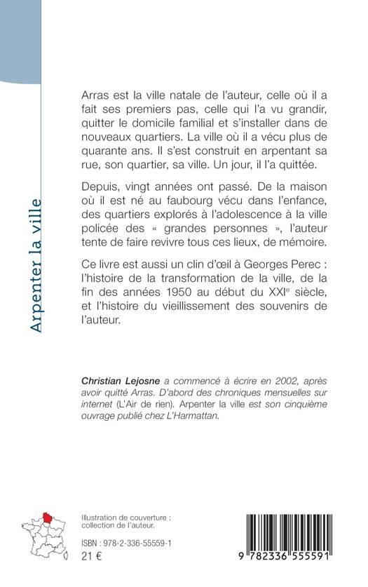 Arras est la ville natale de l'auteur, celle où il a fait ses premiers pas, celle qui l'a vu grandir, quitter le domicile familial et s'installer dans de nouveaux quartiers. La ville où il a vécu plus de quarante ans. Il s'est construit en arpentant sa rue, son quartier, sa ville. Un jour, il l'a quittée. Depuis, vingt années ont passé. De la maison où il est né au faubourg vécu dans l'enfance, des quartiers explorés à l'adolescence à la ville policée des grandes personnes, l'auteur tente de faire revivre tous ces lieux, de mémoire. Ce livre est aussi un clin d'oeil à Georges Perec: l'histoire de la transformation de la ville, de la fin des années 1950 au début du XXIe siècle, et l'histoire du vieillissement des souvenirs de l'auteur.