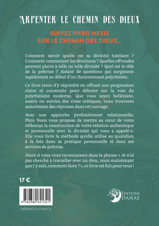 Suivez Phro Nesis sur le chemin des dieux… Comment savoir quelle est sa divinité tutélaire ? Comment commencer les dévotions ? Quelles offrandes peuvent plaire à telle ou telle divinité ? Quel est le rôle de la prêtrise ? Autant de questions qui surgissent rapidement au début d'un cheminement polythéiste. Ce livre tente d'y répondre en offrant une progression claire et construite pour débuter sur la voie du polythéisme moderne. Que vous soyez helléniste, asatru ou suiviez des voies celtiques, vous trouverez assurément des réponses dans cet ouvrage. Avec une approche profondément relationnelle, Phro Nesis vous propose de mettre au cœur de votre réflexion la construction de votre relation authentique et personnelle avec la divinité qui vous a appelé·e. Elle vous livre la méthode qu'elle utilise au quotidien à la fois dans sa pratique personnelle et dans ses services de prêtrise. Alors si vous vous reconnaissez dans la phrase « Je n'ai pas cherché à travailler avec un dieu, mais maintenant que j'y suis, comment faire ? », ce livre est fait pour vous !