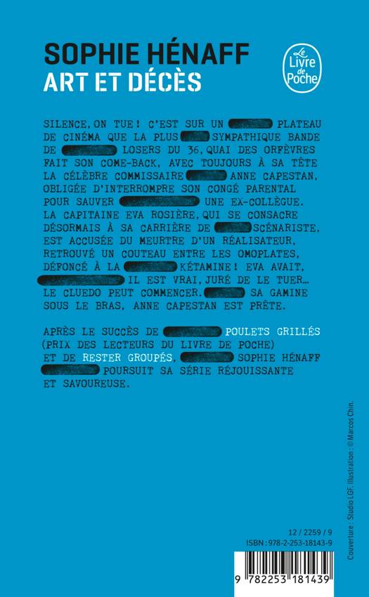 Silence, on tue ! C’est sur un plateau de cinéma que la plus sympathique bande de losers du 36, quai des Orfèvres fait son come-back, avec toujours à sa tête la célèbre commissaire Anne Capestan, obligée d’interrompre son congé parental pour sauver une ex-collègue. La capitaine Eva Rosière, qui se consacre désormais à sa carrière de scénariste, est accusée du meurtre d’un réalisateur, retrouvé un couteau entre les omoplates, défoncé à la kétamine ! Eva avait, il est vrai, juré de le tuer... Le Cluedo peut commencer. Sa gamine sous le bras, Anne Capestan est prête.