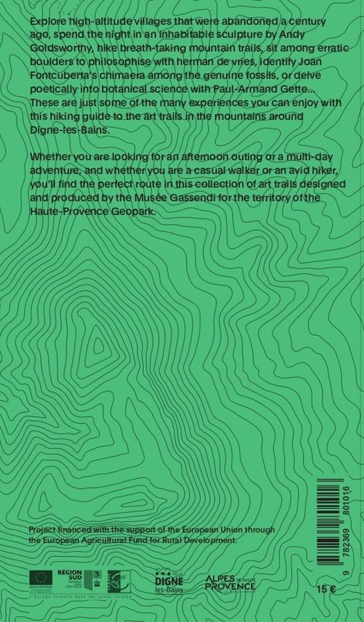Explore high-altitude villages that were abandoned a century ago, spend the night in an inhabitable sculpture by Andy Goldsworthy, hike breath-taking mountain trails, sit among erratic boulders to philosophise with herman de vries, identify Joan Fontcuberta’s chimaera among the genuine fossils, or delve poetically into botanical science with Paul-Armand Gette... These are just some of the many experiences you can enjoy with this hiking guide to the art trails in the mountains around Digne-les-Bains. Whether you are looking for an afternoon outing or a multi-day adventure, and whether you are a casual walker or an avid hiker, you’ll find the perfect route in this collection of art trails designed and produced by the Musée Gassendi for the territory of the Haute-Provence Geopark.