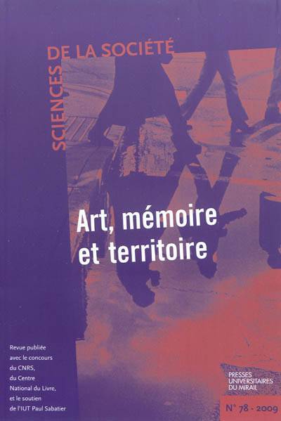 Ce numéro de Sciences de la Société est articulé autour de trois thèmes : actions ou créations artistiques, acte mémoriel et ancrage territorial, et de quatre entrées, qui questionnent successivement l'urbain, le culturel, le patrimoine et l'identité. Il s'agit ainsi d'envisager la reconfiguration d'une oeuvre d'art par l'espace dans lequel elle s'inscrit et/ou la mémoire qu'elle mobilise, et d'analyser la construction culturelle d'un territoire - ou ses représentations imaginaires, et la (re)construction d'une mémoire, à partir d'un médium (oeuvre artistique, photographie, cinéma, etc.).
