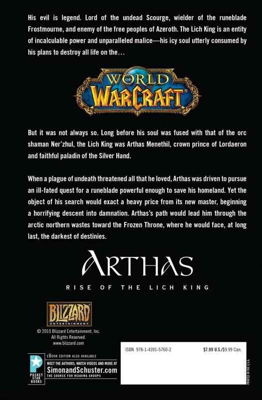 New York Times bestselling and award-winning author Christie Golden brings Arthas the Lick King to life in the book World of Warcraft fans have been clamoring for. Author Christie Golden does for Arthas what she once did for the Orc Lord Thrall in the bestselling