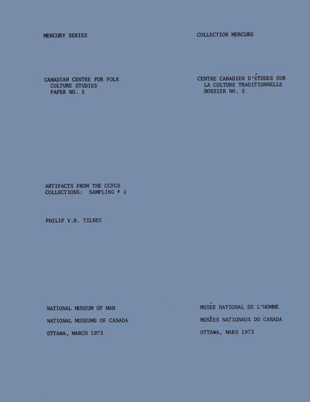 This sampling of artifacts from the collections of the Canadian Centre for Folk Culture Studies represents twenty-three traditional societies. Not exhaustive, it is a combination of photographs and general remarks to illustrate which types of artifacts have particular relevance to the contemporary Canadian folk culture complex.
