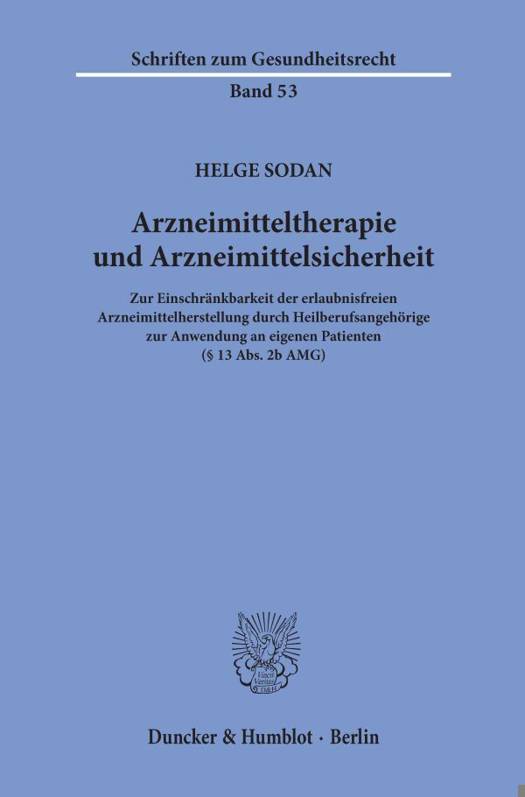 Die erlaubnisfreie Arzneimittelherstellung durch Arzte oder sonst zur Ausubung der Heilkunde Befugte zum Zwecke der personlichen Anwendung bei bestimmten Patienten soll durch das Gesetz fur mehr Sicherheit in der Arzneimittelversorgung (GSAV) eingeschrankt werden, dessen Entwurf die Bundesregierung am 30.1.2019 beschlossen hat (BR-Drucks. 53/19). Auf der Grundlage einiger Vorschriften konnten zukunftig die Verwendung von Organextrakten, die falschlich als Frischzellen bezeichnet werden, bei der Herstellung von Arzneimitteln sowie die Anwendung entsprechender Arzneimittel am Patienten verboten werden. Die vorliegende Schrift beruht auf einem Rechtsgutachten, welches im Auftrag der Europaischen Gesellschaft fur Angewandte Immunologie e. V. (EGAI) erstellt wurde. (Aus dem Vorwort)