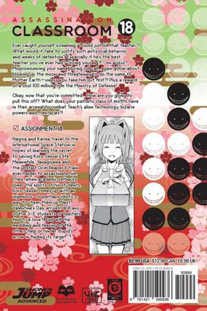 Nagisa and Karma travel to the International Space Station in hopes of learning the secret to saving Koro Sensei's life. Meanwhile, Yanagisawa and the upstart Grim Reaper II train ever harder to assassinate him. Then, when academic setbacks lower the spirits of his students, Koro Sensei comes up with an ingenious--or perhaps idiotic--way to cheer them up. Next, Valentine's Day arrives! Will any of the 3-E students or teachers find true love? And will the meddling and teasing of the others help or hinder Cupid's arrow in finding its target...?