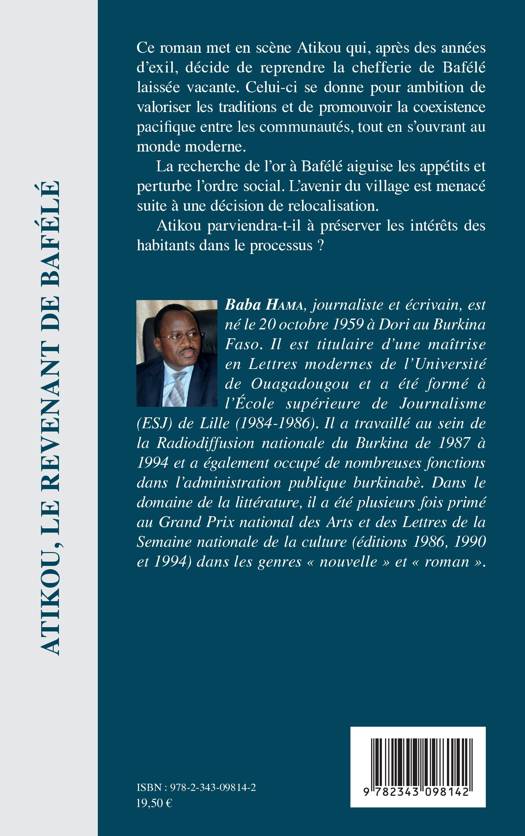 Ce roman met en scène Atikou qui, après des années d’exil, décide de reprendre la chefferie de Bafélé laissée vacante. Celui-ci se donne pour ambition de valoriser les traditions et de promouvoir la coexistence pacifique entre les communautés, tout en s’ouvrant au monde moderne. La recherche de l’or à Bafélé aiguise les appétits et perturbe l’ordre social. L’avenir du village est menacé suite à une décision de relocalisation. Atikou parviendra-t-il à préserver les intérêts des habitants dans le processus ?