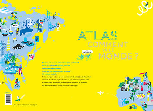 Pourquoi part-on vivre dans un autre pays que le sien ? Est-ce qu'il y a de l'eau potable partout ? Comment protéger la nature ? Quels sports pratique-t-on dans le monde ? Où vont nos poubelles ? Toutes les réponses à ces questions se trouvent dans les 22 cartes fourmillant de détails de cet atlas original et coloré où l'on découvre la planète Terre et ses habitants, les dangers qui les menacent mais aussi les initiatives qui donnent de l'espoir. Un tour du monde passionnant !