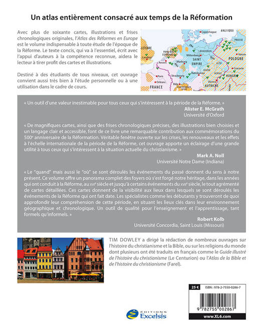 Avec plus de soixante cartes, illustrations et frises chronologiques originales, l’Atlas des Réformes en Europe est le volume indispensable à toute étude de l’époque de la Réforme. Le texte concis, qui va à l’essentiel, écrit avec l’appui d’auteurs à la compétence reconnue, aidera le lecteur à tirer profit des cartes et illustrations. Destiné à des étudiants de tous niveaux, cet ouvrage convient aussi très bien à l’étude personnelle ou à une utilisation dans le cadre de cours.