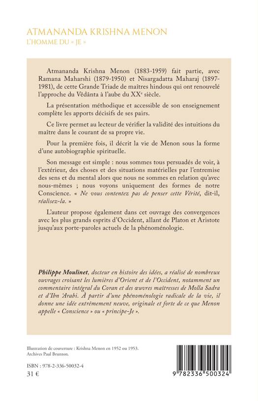 Atmananda Krishna Menon (1883-1959) fait partie, avec Ramana Maharshi (1879-1950) et Nisargadatta Maharaj (1897-1981), de cette Grande Triade de maîtres hindous qui ont renouvelé l’approche du Vêdânta à l’aube du XXe siècle. La présentation méthodique et accessible de son enseignement complète les apports décisifs de ses pairs. Ce livre permet au lecteur de vérifier la validité des intuitions du maître dans le courant de sa propre vie. Pour la première fois, il décrit la vie de Menon sous la forme d’une autobiographie spirituelle. Son message est simple : nous sommes tous persuadés de voir, à l’extérieur, des choses et des situations matérielles par l’entremise des sens et du mental alors que nous ne sommes en relation qu’avec nous-mêmes ; nous voyons uniquement des formes de notre Conscience. « Ne vous contentez pas de penser cette Vérité, dit-il, réalisez-la. » L’auteur propose également dans cet ouvrage des convergences avec les plus grands esprits d’Occident, allant de Platon et Aristote jusqu’aux porte-paroles actuels de la phénoménologie.