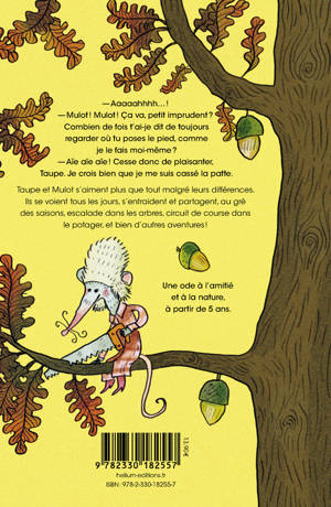Le septième tome des aventures de Taupe et Mulot ! En cette belle journée d'automne, Taupe est d'humeur aventurière. Il décide de grimper au sommet d'un pin pour mieux apprécier la vue. Mulot a le vertige et refuse de l'accompagner... C'est pourtant lui qui finit par se casser la patte, en fuyant un Taupe déterminé à lui faire prendre de la hauteur ! Heureusement, leurs amis de la forêt viennent à sa rescousse... Un succès qui se confirme au fil de la parution des nouvelles aventures de nos deux héros, déjà près de 70 000 exemplaires vendus au total de cette irrésistible série !