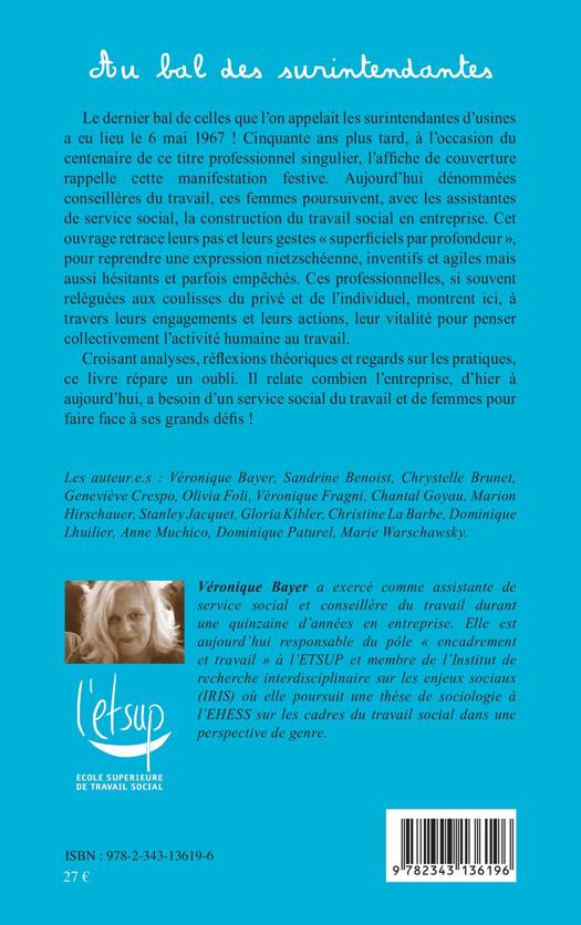 Les conseillères du travail, autrefois appelées surintendantes d'usines, poursuivent la construction du travail social en entreprise. Ces professionnelles pensent l'activité humaine au travail avec des gestes inventifs, agiles mais parfois empêchés. Cet ouvrage croise analyses, réflexions théoriques et regards sur la pratique pour rendre hommage à leurs actions et engagements.