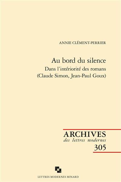 Le silence, cette expérience sensible que nous éprouvons dans l'espace mais aussi dans le temps, il arrive que nous l'éprouvions aussi à la lecture de certains romans. Si les « vrais livres doivent être les enfants non du grand jour et de la causerie mais de l'obscurité et du silence » (Proust), ces « vrais livres » sont souvent pleins de silences, frémissants de ce qui ne se dit pas et qui pourtant est bien là, vivant. Pages de romans pleines de silences, silences humains, silence des lieux et des objets, ou silences mystérieux de l'auteur que le lecteur pressent, ce sont ces silences latents, enfouis dans le secret des mots qui nourrissent ici le dialogue poétique et sensible reliant l'oeuvre de Claude Simon et celle de Jean-Paul Goux.